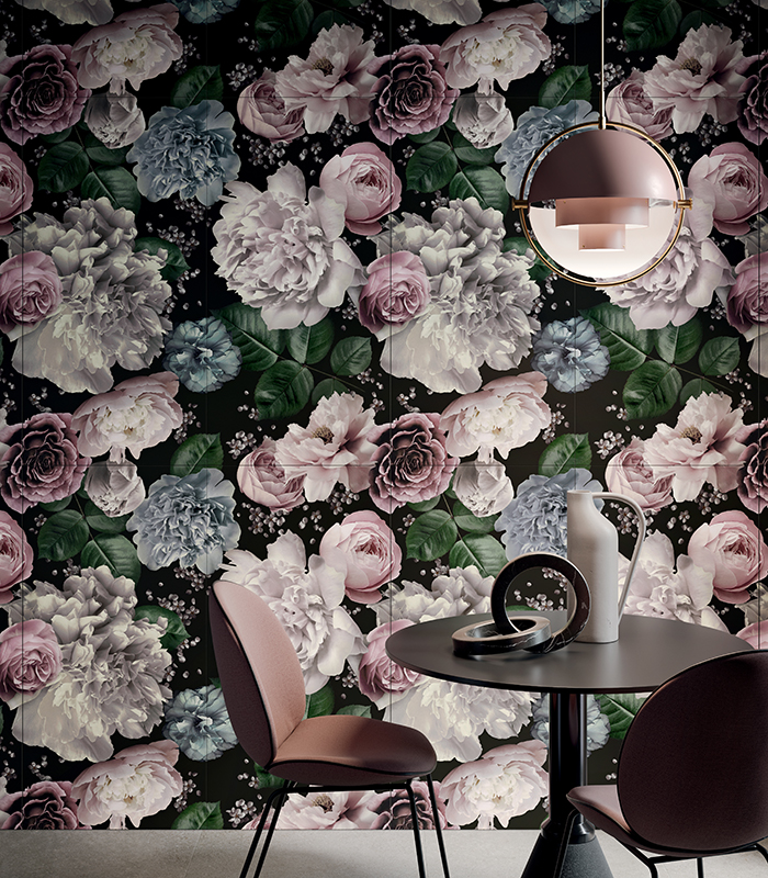 In corners, on walls, whether big or small, these oases unleash the imagination and soothe and comfort the mind and soul. With the ZERO.3 Glam collection one can choose from a selection of 5 different decorative themes that range from delicate flower patterns to inspiring designs for actual vertical gardens.