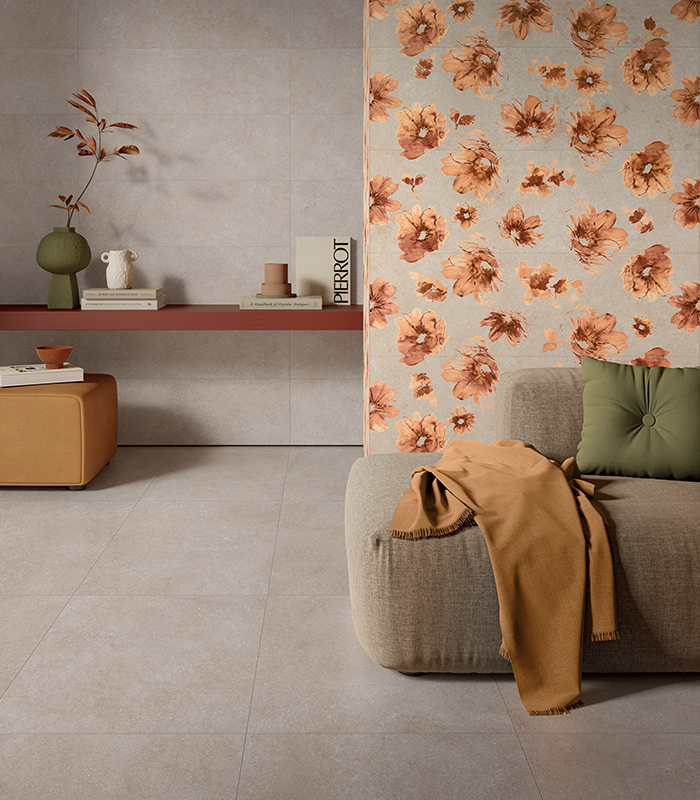 The floor collections, Borealis and Kairos, offer remarkable wood effects, while options like Pierre des Reves and The Place provide stunning stone effects. These collections infuse indoor spaces with a refined and modern taste, blurring the boundaries between the house and its garden. They create striking chromatic contrasts, adding great personality to the space.