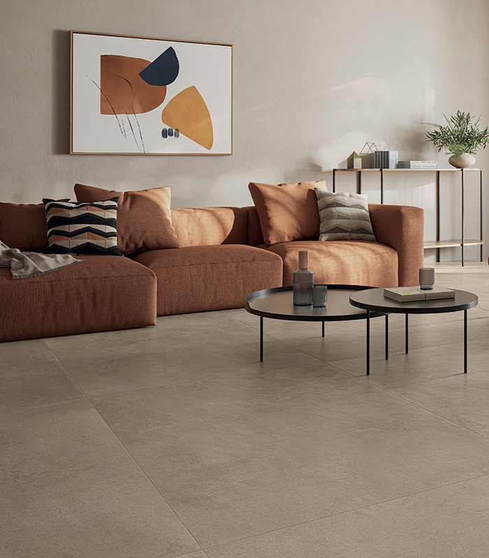 Tones such as terracotta, ochre, and beige combine with ceramic surfaces with wood and stone effect to create warm and welcoming environments, where a widespread sense of calm and well-being prevails.