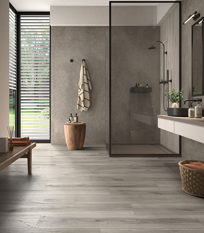 The bathroom is one of the places in the house where a balance must be struck between taste, personality and functionality. It is a space devoted to daily well-being, to moments of total relaxation, in which every detail can make a difference, from the furnishing elements to the surfaces. The floor and wall coverings have the most significant visual impact, acting as a second skin that can guide our imagination by making spaces warm and welcoming.