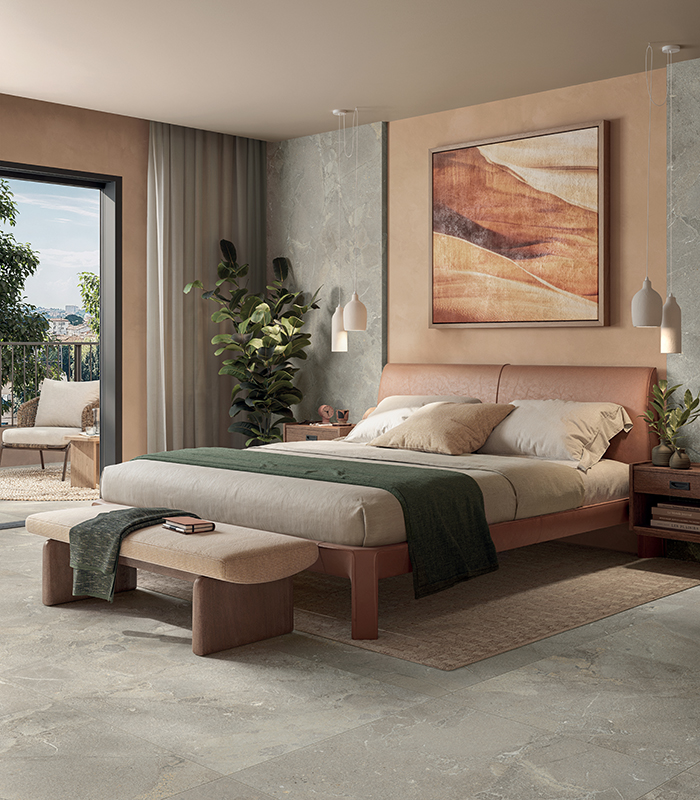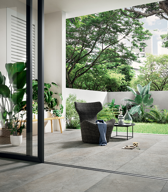 Creating flooring or coverings with an aesthetic that evokes the world of natural stone means creating a connection between past and present, composed of time-worn textures. Panaria’s stone-effect porcelain stoneware offers solutions distinguished by their unpredictable natural look, which makes it possible to create spaces that are always unique.